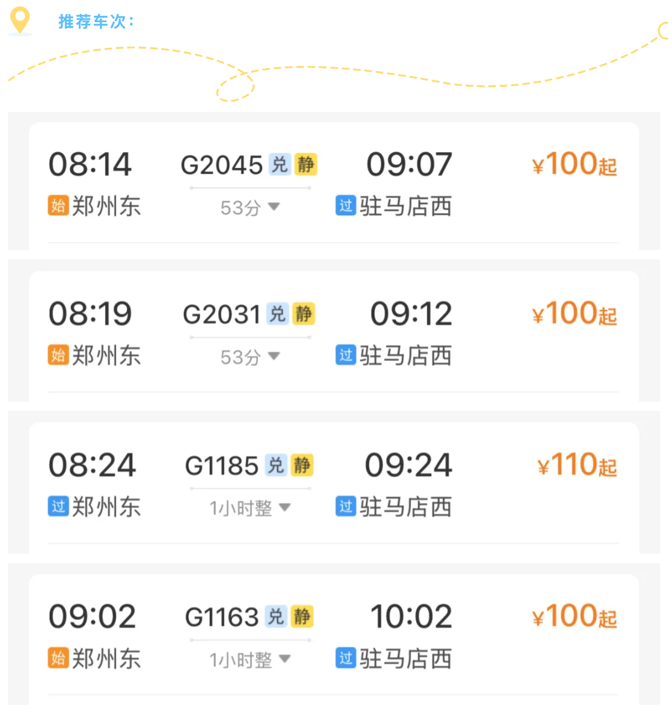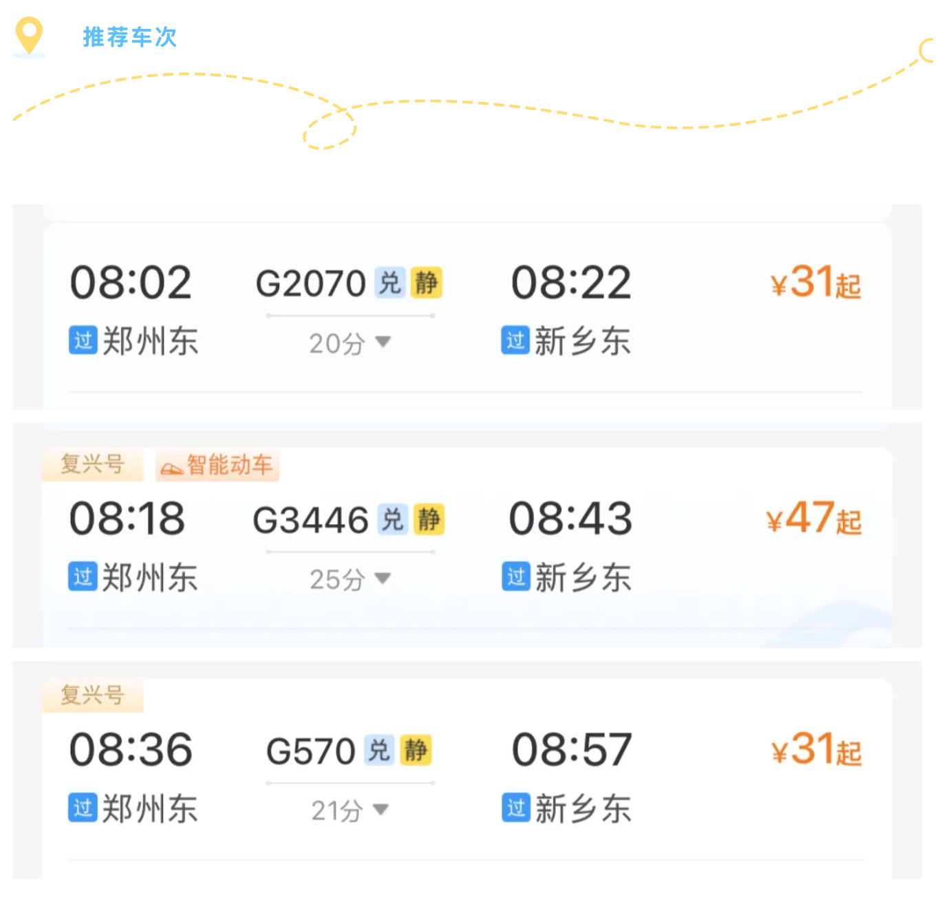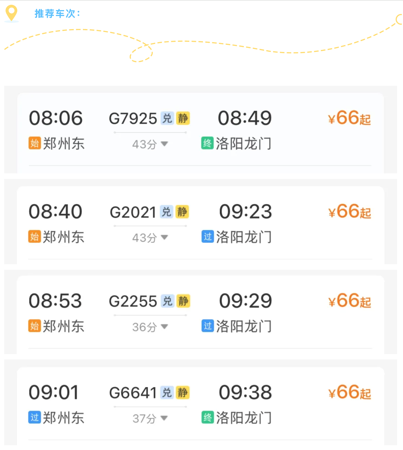 1. 列车遴荐:提议优先选高铁,班次密、速率快,当日走动 / 两日游无压力。