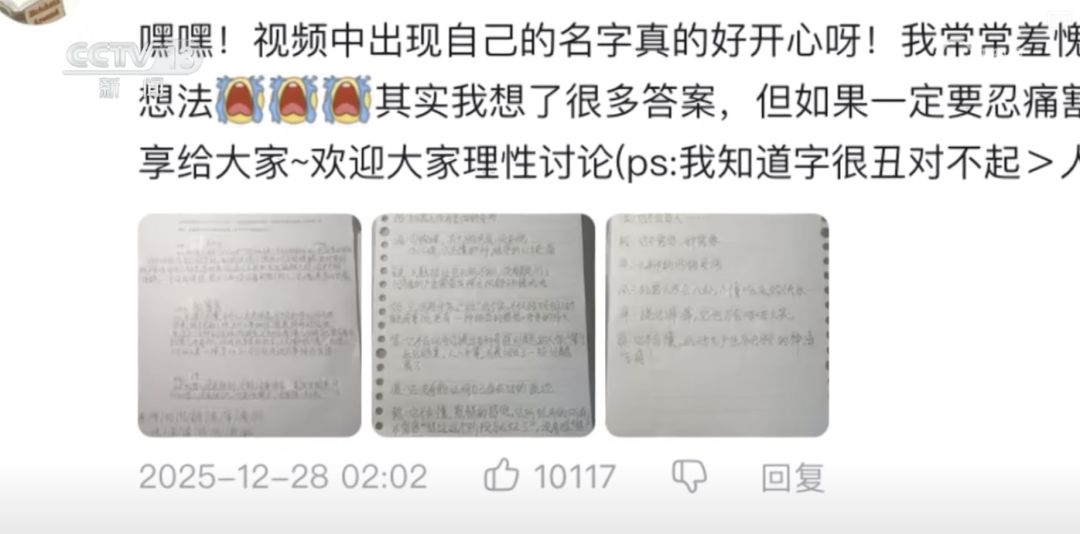平时内向沉默的女孩也饱读起勇气在视频下与寰球互动,她在给于雅萱的卡片上写说念:萱萱敦朴,你更变了我的一世。