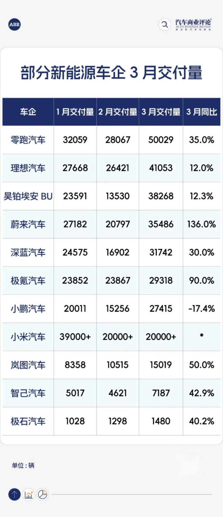 新势力方面,2月举座施展偏弱,无一车企销量打破3万辆。参加3月后销量马上回暖,真实一谈的新势力车企销量齐相较2月环比高涨。