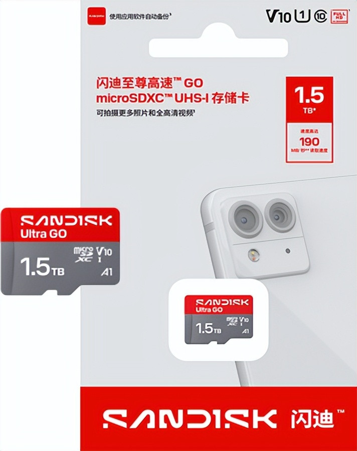 新推出的闪迪至尊高速™ GO microSDXC™ UHS-I 存储卡读取速率高达190MB/s(128GB–1.5TB容量版块),具备出色的兼容性和可靠性,为用户提供高性价比的存储采取。