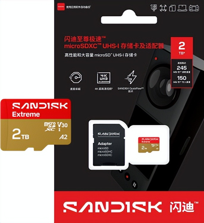 其中,闪迪至尊超极速™出动 microSDXC™ UHS-I存储卡2TB容量版块读取速率高达250MB/s,写入速率可达150MB/s,适用于通顺相机、无东说念主机的5K/4K超高清视频捕捉,同期能加速行使模范加载速率,升迁出动游戏体验;闪迪至尊极速™出动microSDXC™ UHS-I存储卡2TB容量版块的读取速率高达245MB/s,相似支捏5K/4K视频录制,为Android™设立、札记本电脑和掌上游戏机提供高效扩容决议。