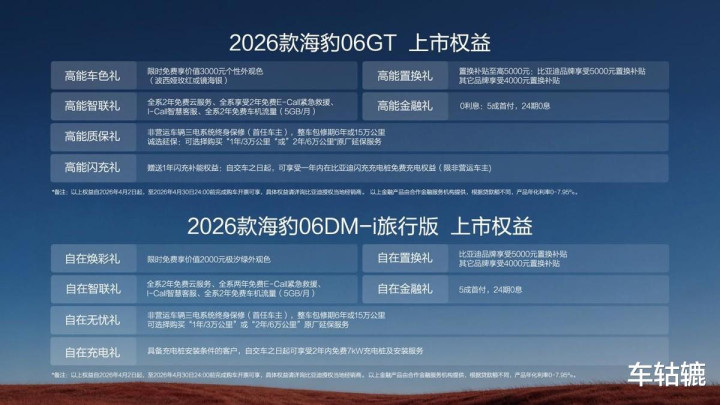 2026年4月2日,比亚迪海洋网迎来“高光时刻”——2026款海豹06GT与海豹06DM-i旅行版同步上市。前者主打纯电畅通,售价12.89-16.99万元;后者聚焦混动休旅,售价11.19-13.99万元。两款新车凭借闪充技艺、激光雷达智驾与越级成立,径直掀起10万级新动力阛阓的“桌子”。