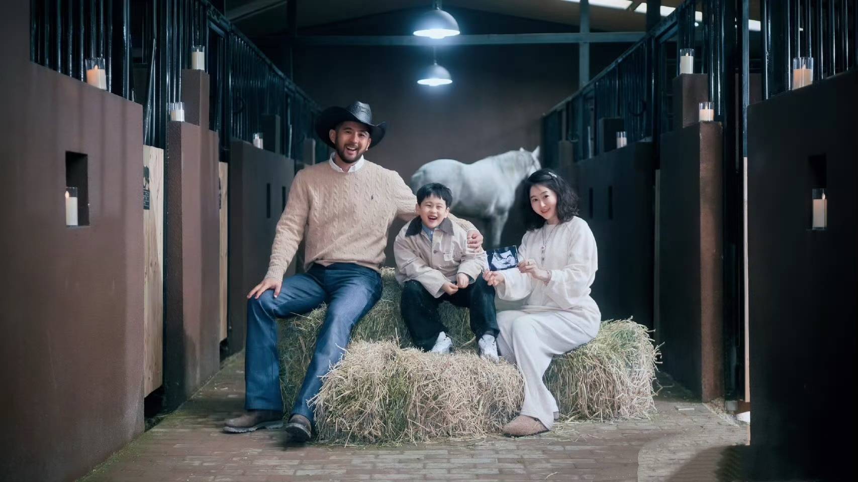 官宣相片里藏着若干戳心细节?马杨依旧是秀美性的西北豪杰造型,却注重翼翼用大手托着襁褓中的小女儿,目光良善得能掐出水;马君妍刚分娩完气色红润,嘴角扼制不住地上扬;最让东谈主破防的是马立奥——这个也曾在节目里喊着“我不要吃菜菜”的小霸王,