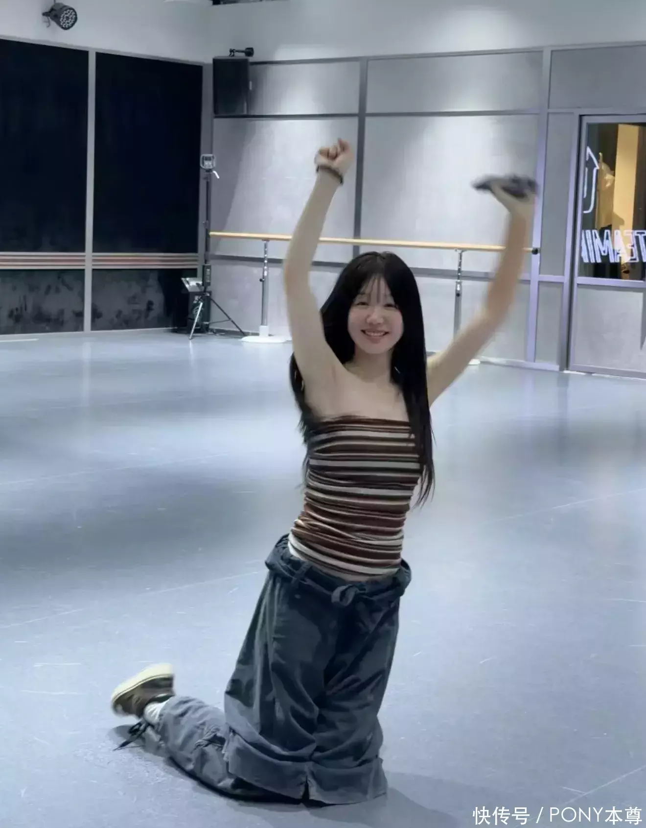 徐梦洁也特殊心爱穿抹胸吊带上衣搭配工装牛仔裤!上半身的条纹抹胸,清纯仙女也就18岁!