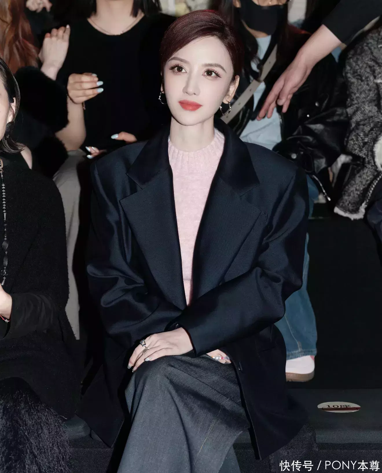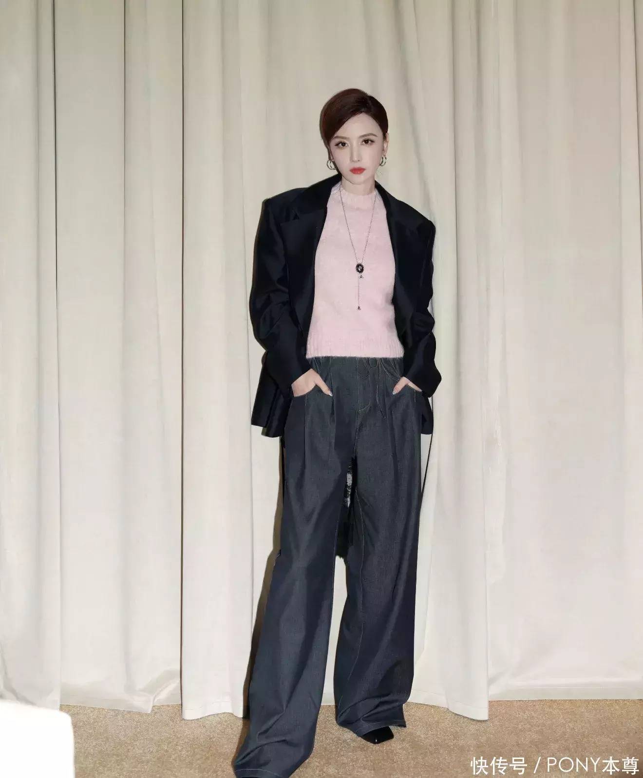 若是说白色蕾丝长裙展现她的肉体上风,那么西装穿搭则尽显知性御姐气质!玄色西装很闲居,顺应通勤穿!内搭粉色诚笃衫,让她的皮肤看起来白的发光!
