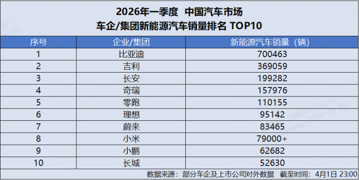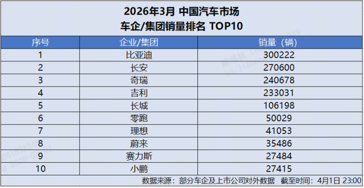 4 月 1 日,比亚迪发布 2026 年 3 月产销数据,单月总销量达300222 辆,强势冲突 30 万辆大关,再添荣耀战绩,斩获中国车企销量冠军,并贯穿 58 个月蝉联中国新动力汽车销量冠军,持续踏实行业龙头地位。公法现在,比亚迪新动力汽车累计销量已超1580 万辆,一季度累计销售 700463 辆,以硬核数据印证工夫与边界双重实力。